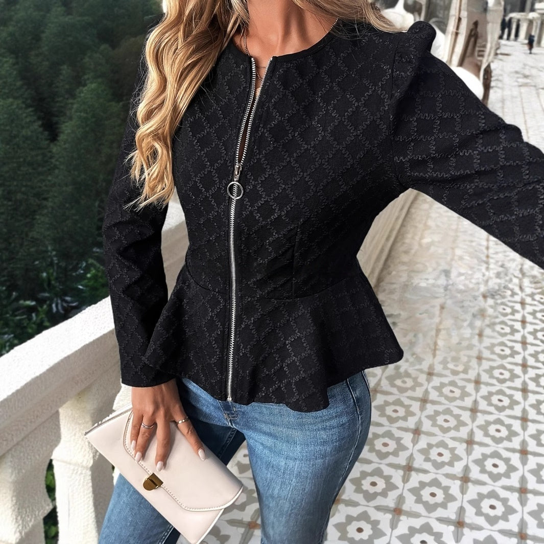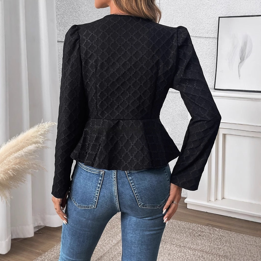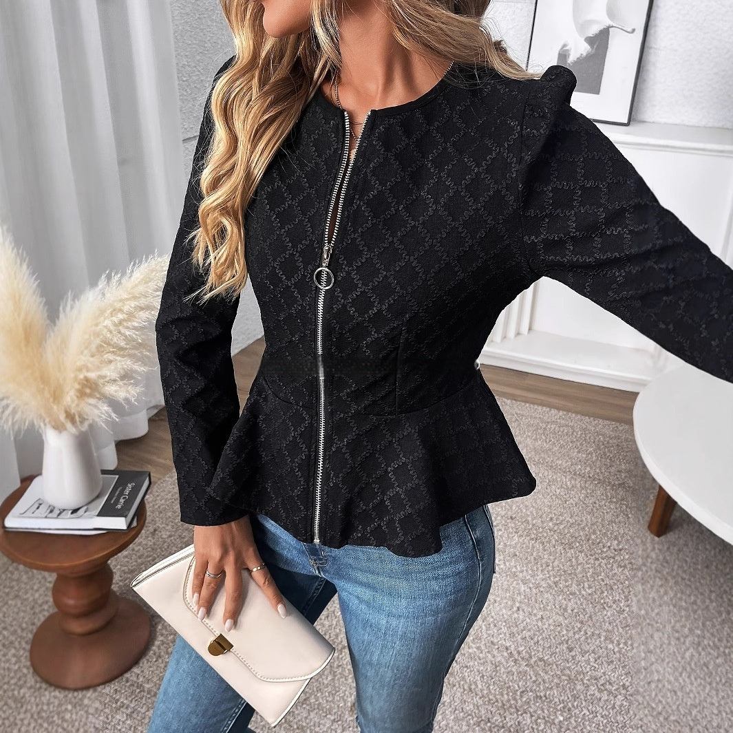 Haut léger à manches longues col rond ,coupe ajustée, effet gaufré