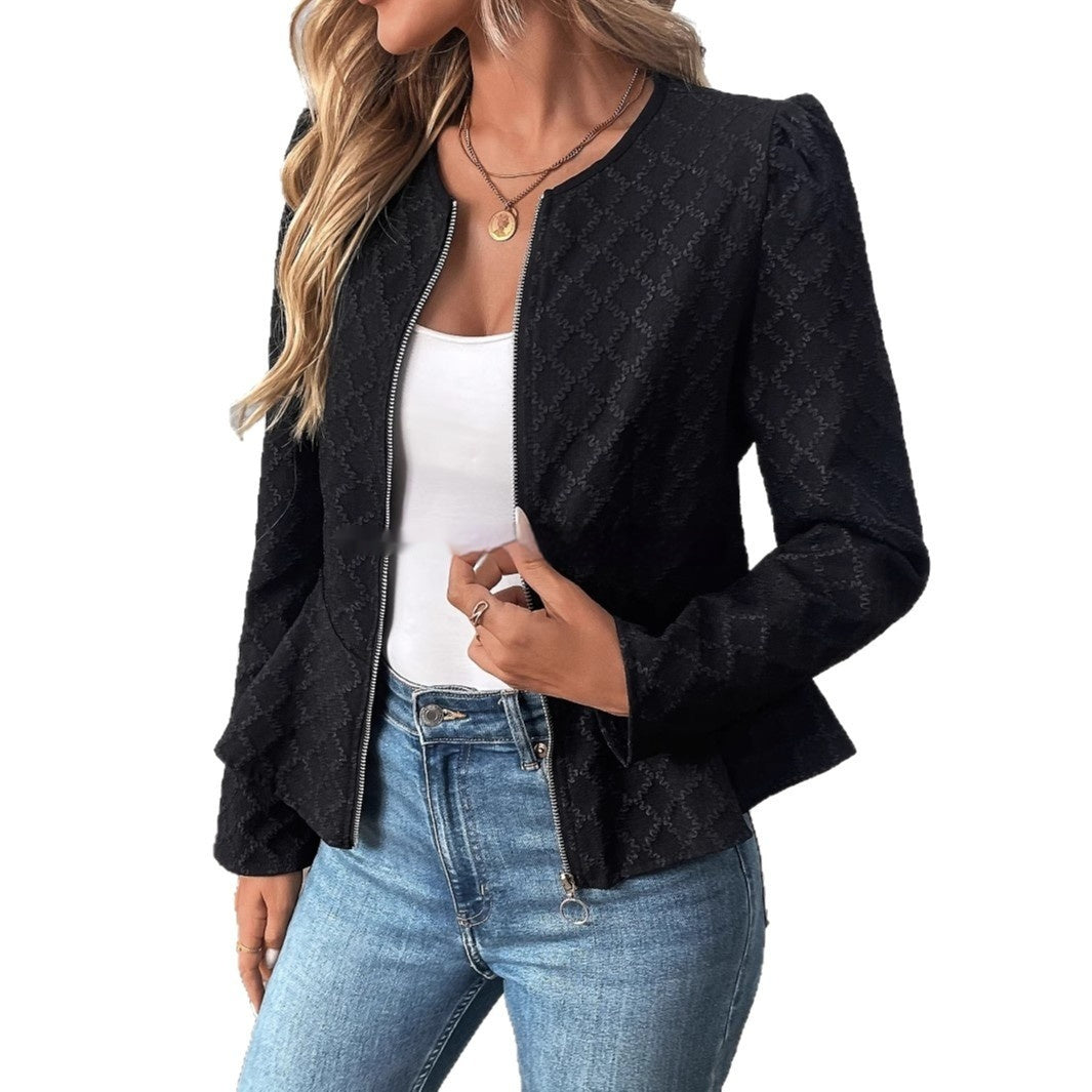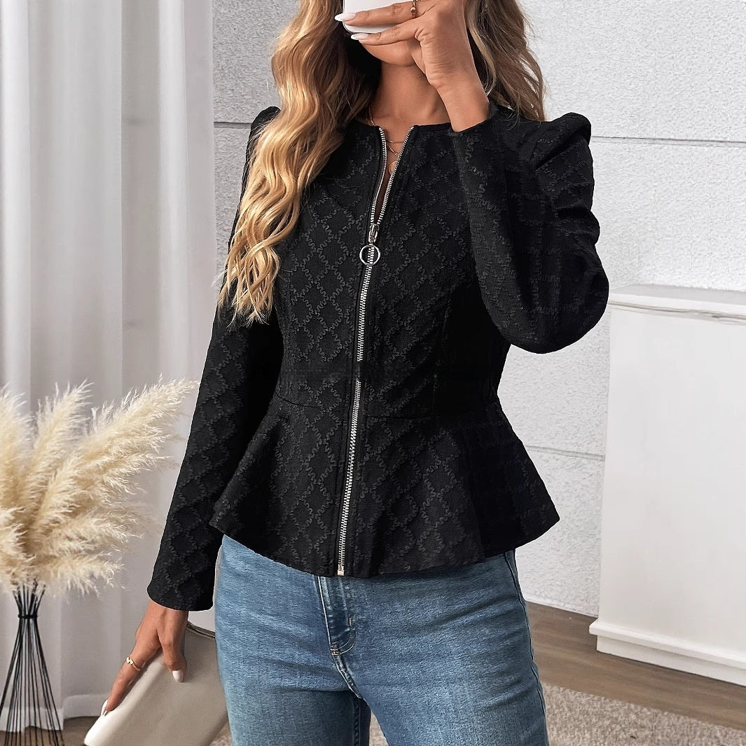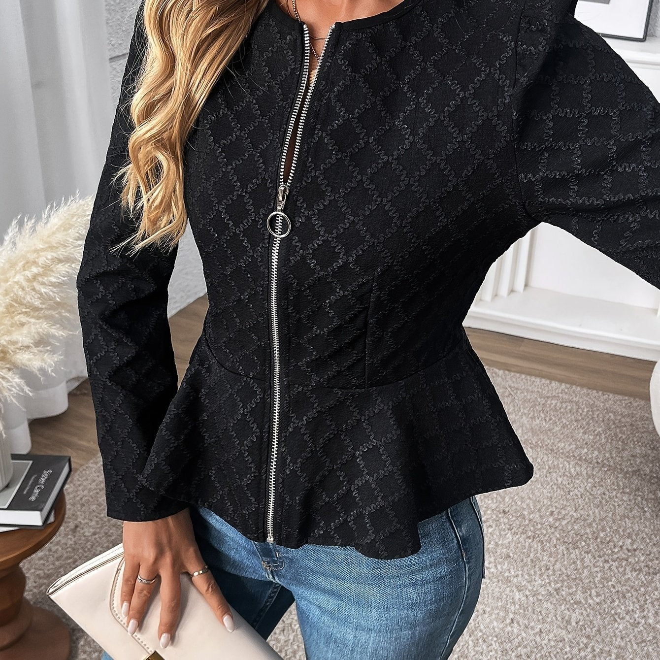 Haut léger à manches longues col rond ,coupe ajustée, effet gaufré