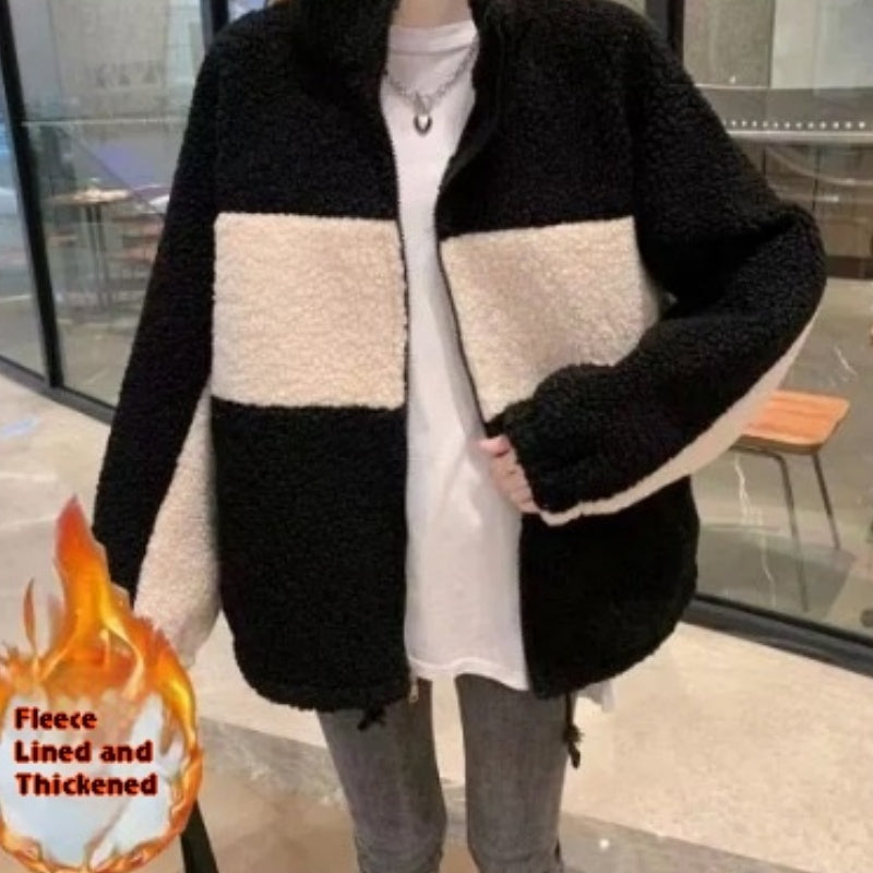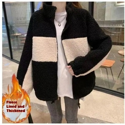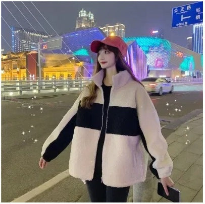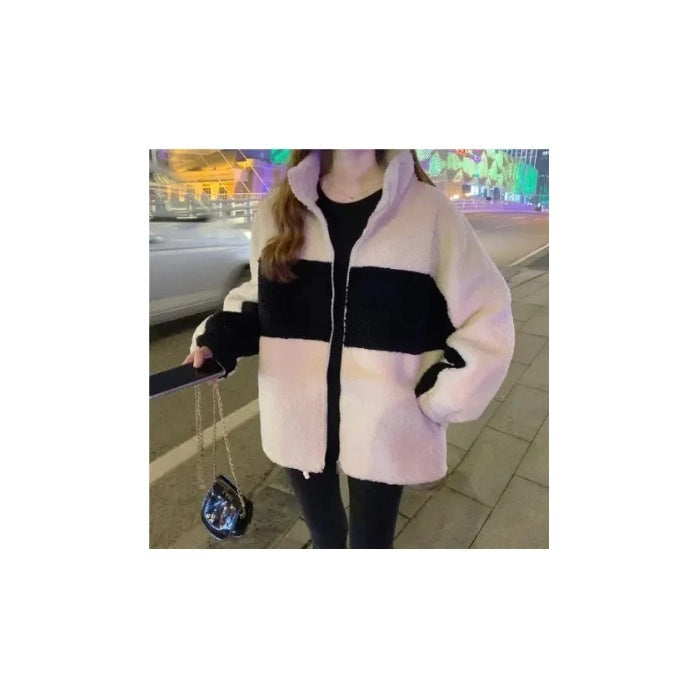 Veste court ample et décontracté pour femme en duvet d'agneau, assorti à tout
